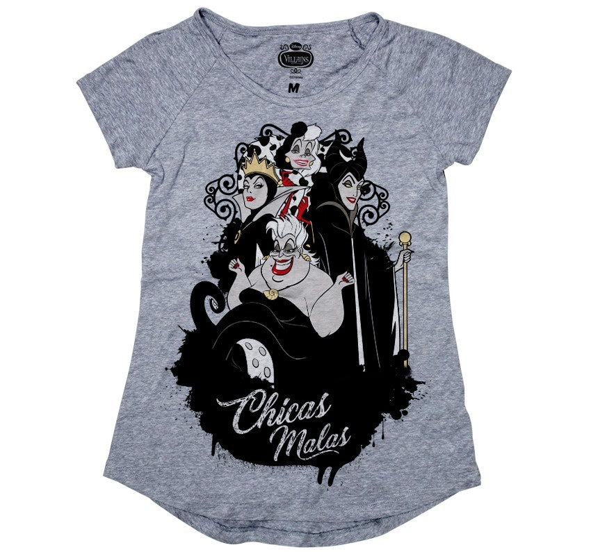 Playera color Gris con estampado de las villanas de Disney, 100% Algodon