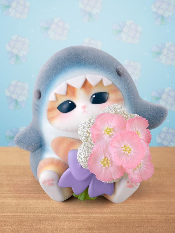 "Shark Nyan" de mofusand ya está disponible en la marca de figuras "mofamofy", que presenta suaves peluches y un colorido ramo de flores con una sensación de transparencia.Se caracteriza por su textura esponjosa, un ramo transparente y colorido, encantadores ojos brillantes y una figura regordeta. Las flores utilizadas para el ramo son Nadeshiko gypsophila, que simboliza un corazón inocente y puro en el lenguaje de las flores, representado en las apariciones honestas y juguetonas de los mangas de cuatro paneles con Shark Nyan.