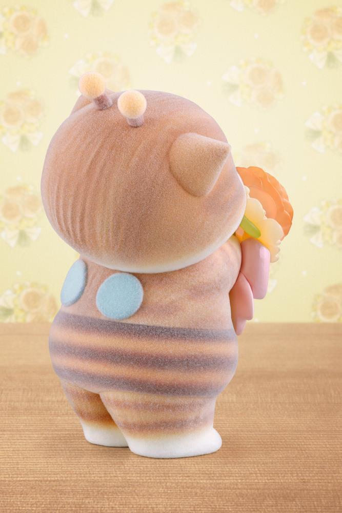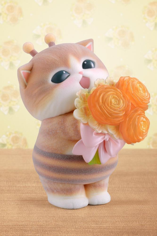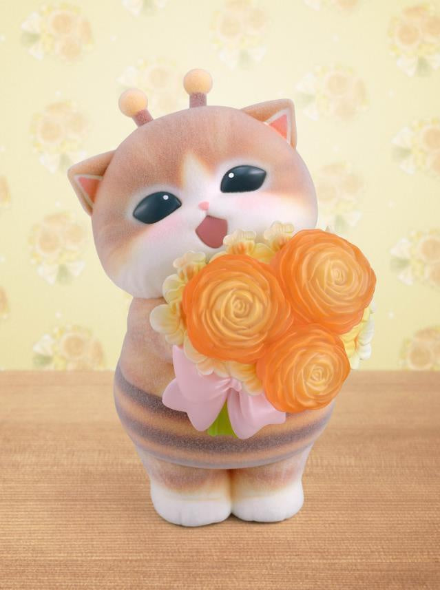 El "Hachinyan" de Mofusand ya está disponible en la marca de figuras "mofamofy", que presenta suaves peluches y ramos transparentes y coloridos. Se caracteriza por su textura esponjosa, un ramo transparente y colorido, encantadores ojos brillantes y una figura regordeta. Las flores utilizadas en el ramo son Oncidium, que representa la palabra "delicadeza" en el lenguaje de las flores, capturando a la perfección la encantadora y tierna ternura de Hachinyan. Además, se seleccionaron rosas naranjas que simbolizan el amor y los lazos, ya que representan la cooperación, una característica clave de las abejas.