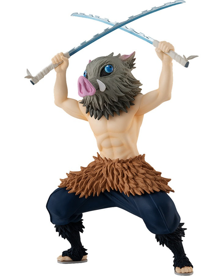 Inosuke ha sido recreado blandiendo sobre su cabeza las dos espadas Nichirin. Asegúrate de comprar las otras figuras para que las exhibas juntas!